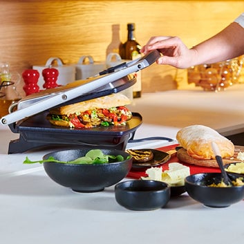 We know you're serious about your sandwiches, which is why purchasing a cold panini from the grocery store when you're out and about just won't cut it. If you're looking to achieve that perfect, crispy golden-brown texture then you're going to need a model that will help you achieve just that. Our Panini Press is your top choice in terms of functionality, temperature control and easy clean-up. The flat plates allows you to cook more-evenly, therefore, ensuring your meals are cooked all the way through.