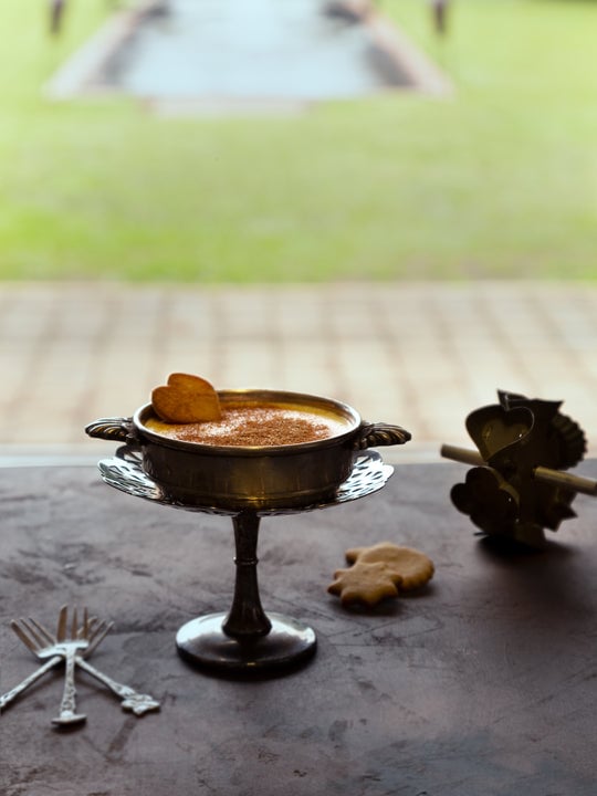 Serve the melktert custard in glasses and with the cinnamon sugar biscuits.