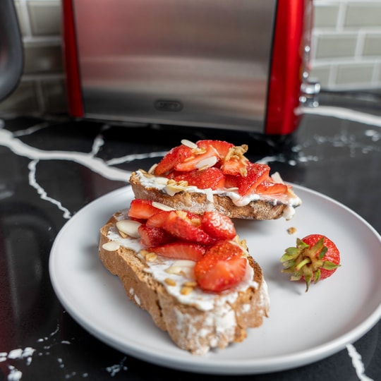 - Lightly toast the rye bread. Spread the vanilla and cinnamon butter on the rye bread. Spread a spoonful of Greek yogurt on the bread. Place the strawberries on top. Scatter the rye granola and almond flakes on top. Serve immediately.