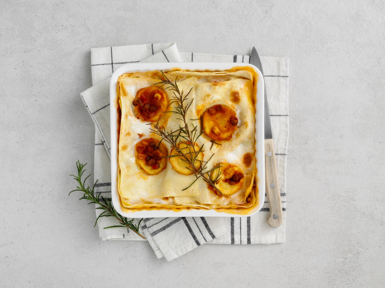 - Assemble the lasagna in layers: Start with a layer of lasagna noodles, followed by the vegetable mixture, and a drizzle of bechamel sauce. Repeat these layers, finishing with a layer of bechamel sauce on top.