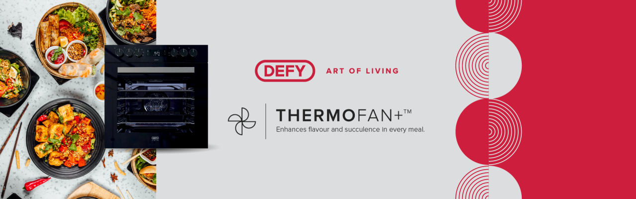 Discover Defy's ThermoFan+™ Technology, a game-changer in the world of kitchen innovation. This sleek and innovative collection is equipped with exclusive ThermoFan+™, optimizing cooking time through ultra-efficient heat circulation. Elevate your culinary adventures with a technology that not only reduces cooking time but also enhances the succulence and flavor of every dish. Explore the future of cooking with ThermoFan+™.